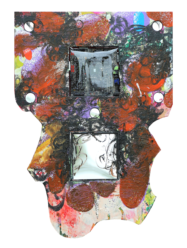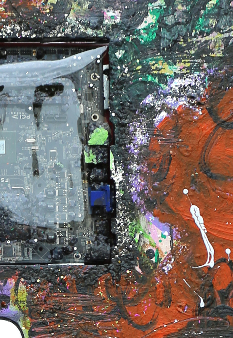 acrylic, retro-reflective vinyl, plastic, polyester, motherboard